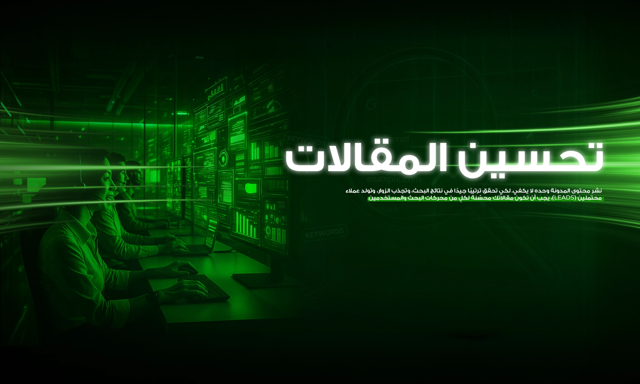 نقوم بتحسين مقالاتك للحصول على تصنيف أعلى، وإشراك القراء لفترة أطول، وتوجيه حركة المرور العضوية الثابتة التي تتحول إلى عملاء حقيقيين.